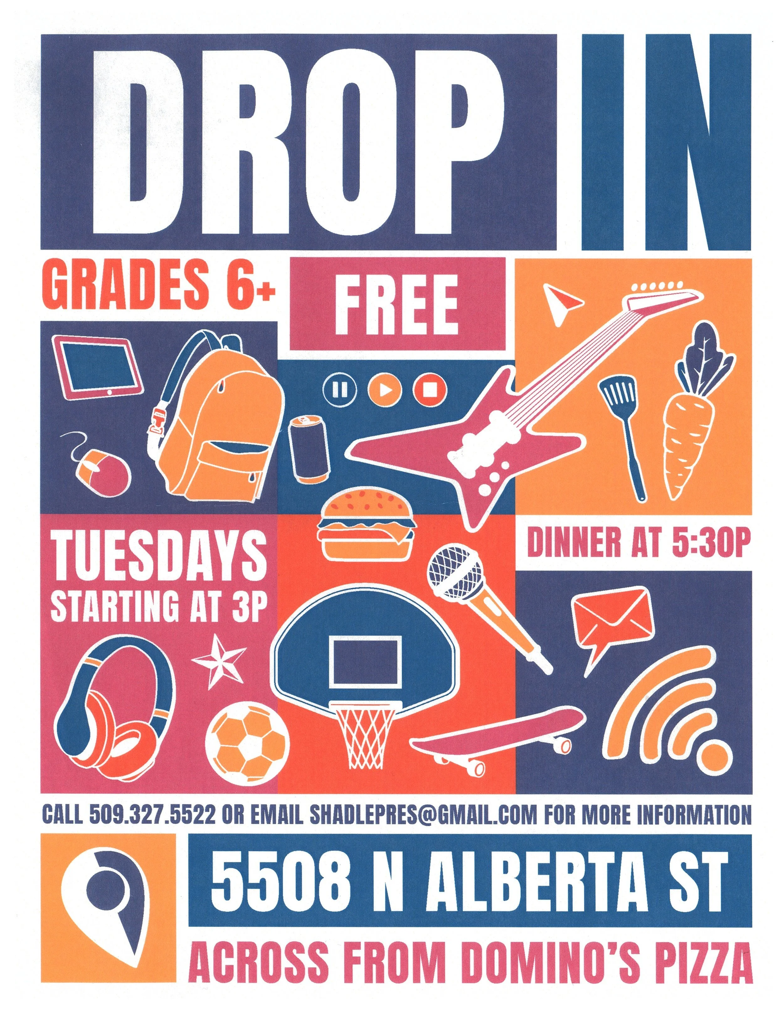 The Young Adults Journey Group partners with Shadle Presbyterian Church in providing a location for students in Grades 6-12 to study and/or hang out in a safe and fun environment on Tuesdays at 3pm. Shadle Pres hosts their weekly all-church dinner at 5:30pm. Volunteers are welcomed to attend.